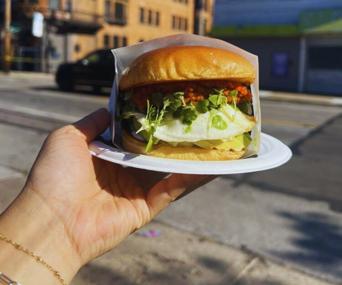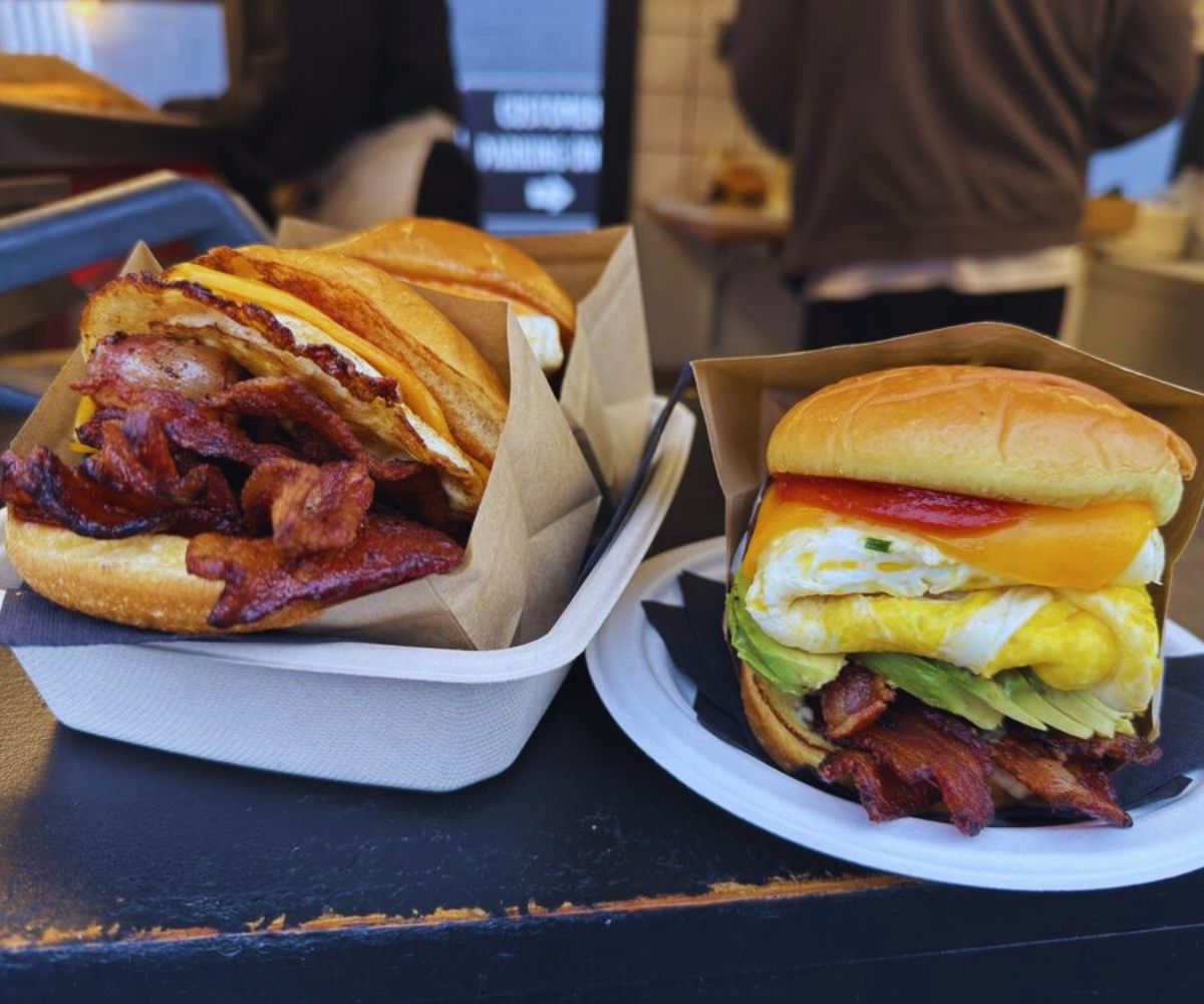 Mila: The Mila layers a pasture-raised over-medium egg, avocado, arugula microgreens, everything cream cheese, and romesco sauce into a brioche bun that gives you a creamy, nutty, herby bite that feels like a dressed-up breakfast bagel in sandwich form. 🥑