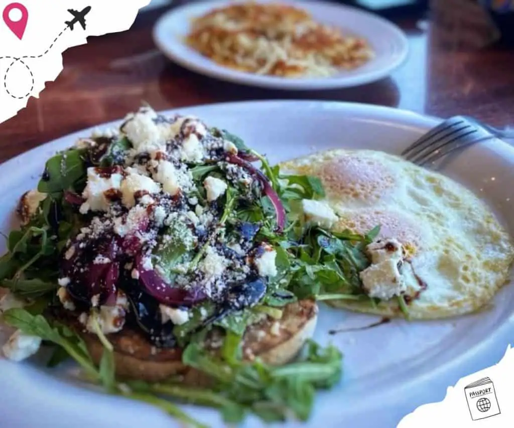 - Carnitas Benedict: Slow-roasted pork topped with chipotle hollandaise sauce and pico on homemade corn cake