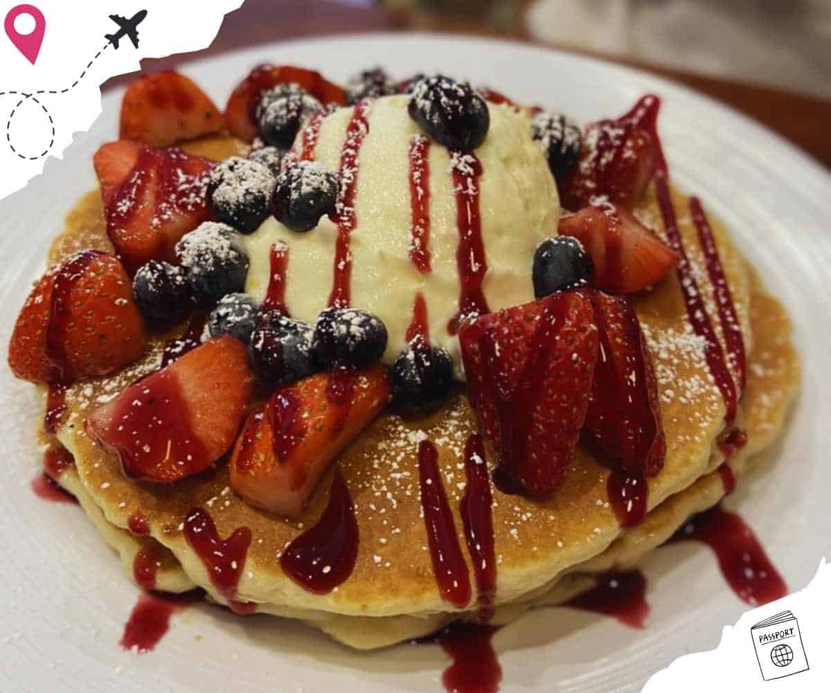 - Paradise Coconut Pancakes: Layered with coconut mascarpone cheese and topped with toasted coconuts & macadamia nuts