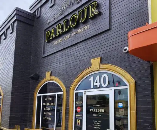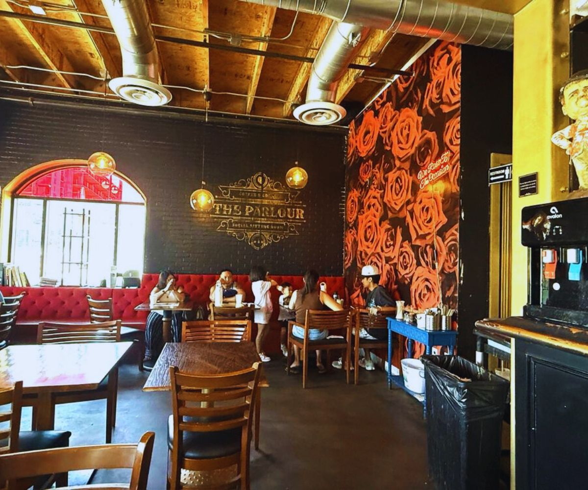 Daytime at The Parlour Coffee and Cooking feels like a mash-up of cozy coffee bar and energetic brunch house, with vibrant decor and intimate seating that Giftly’s ambiance notes describe as relaxed, inviting, and perfect for small groups or solo coffee sessions.