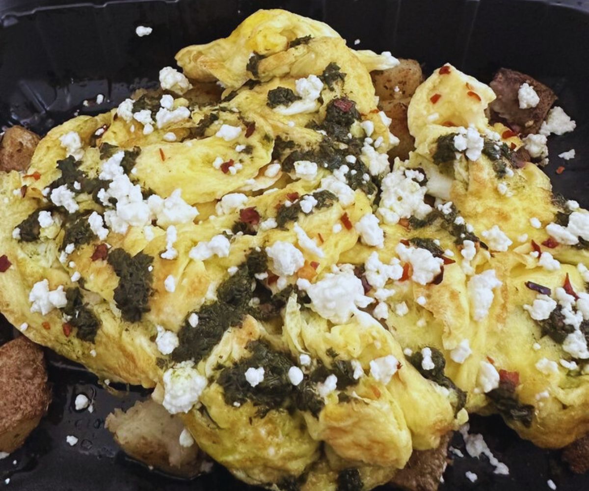 “Eggs Over Potato with Pesto and Feta” / Pesto Eggs: Breakfast lovers shout out an eggs over potato with pesto and feta plate in the Toasted Inc feature on Res‑Discover, praising the in‑house bread and pesto-and-feta combo as a really satisfying breakfast for its flavors.