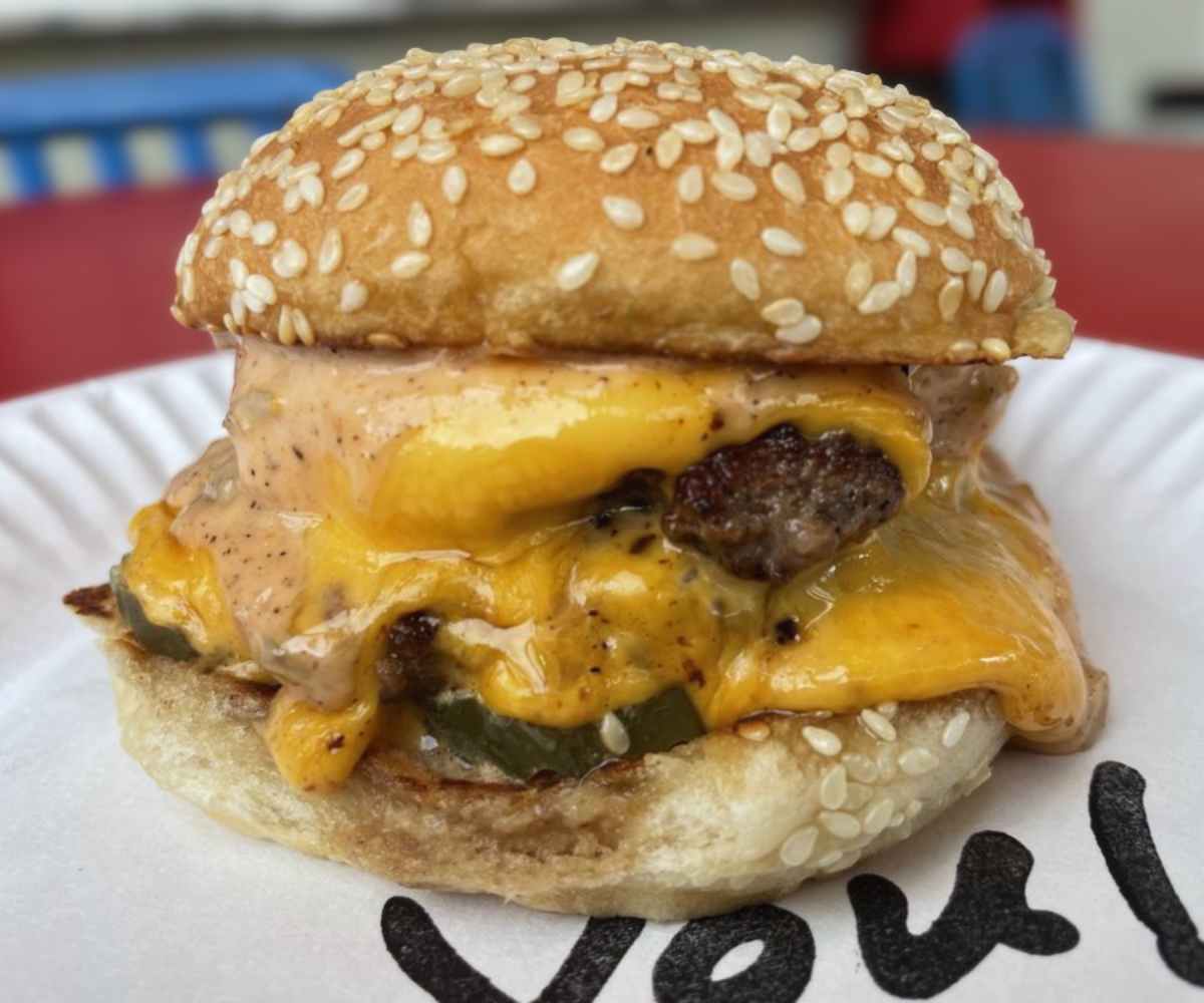 Best Burger on “The Menu”: Double 4oz patties with American cheese, Irv’s sauce, grilled onions, and pickles on a toasted sesame bun—customers describe this as seasoned to perfection with an incredible crust that rivals any gourmet burger joint 🥩