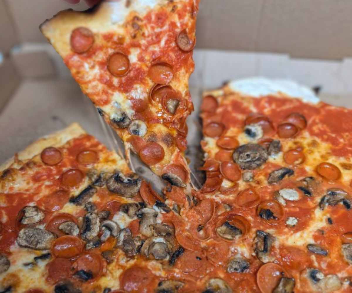 24-Inch Trenton-Style Pizza: Massive cheese-on-the-bottom pies with thin, crispy crust and pleasant char that barely fit through the door – perfect for sharing or conquering solo