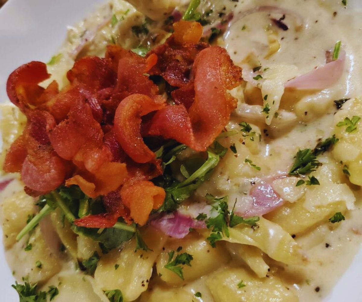 • Gnocchi Gorgonzola: Pillowy gnocchi in a truffle gorgonzola cream sauce with red onions, artichokes, baby arugula, and crispy pancetta that’s a definite must-try, especially for blue‑cheese fans, offering an indulgent, sauce‑coated bite.