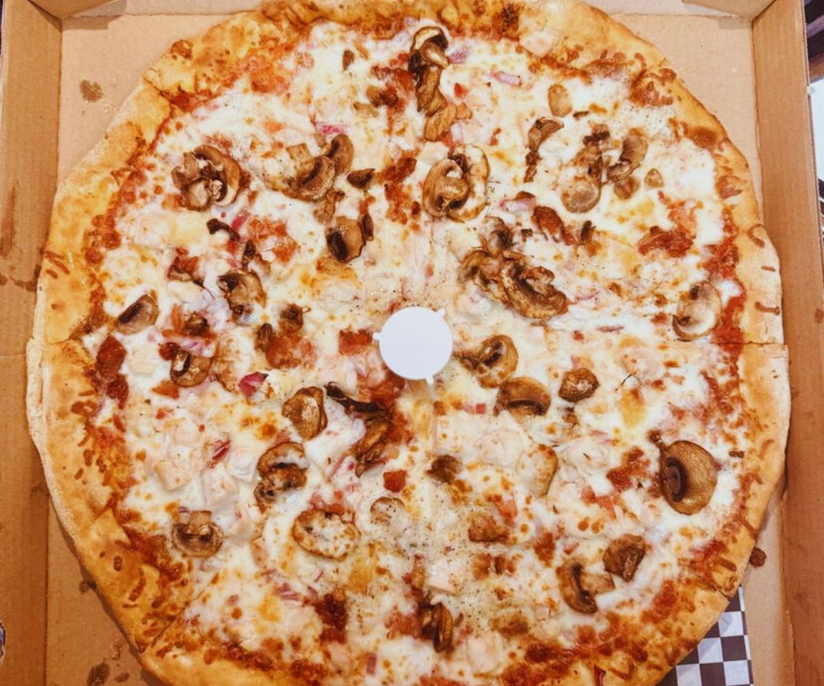 - Chicken Carbonara Pizza: Chicken, Parmesan, bacon, tomato, mushrooms, onion, and an Alfredo drizzle bring rich, creamy pasta energy to the pizza world, and the pie people rave about when they want something savory and loaded with toppings. 🧀