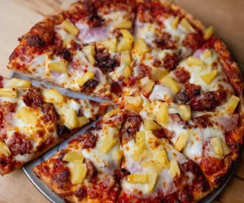 Meat Monster Pizza: This protein-packed beast comes loaded with ham, pepperoni, bacon, sausage, meatballs, and cheese all on one massive pie—basically a carnivore’s ultimate dream come true for serious meat lovers.