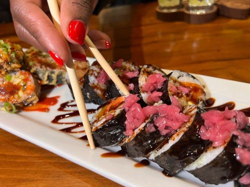 Visit MESU for Mexican-sushi fusion featuring Baja fish tacos and lobster rangoon rolls with bold flavors served until 2 AM on King Street.