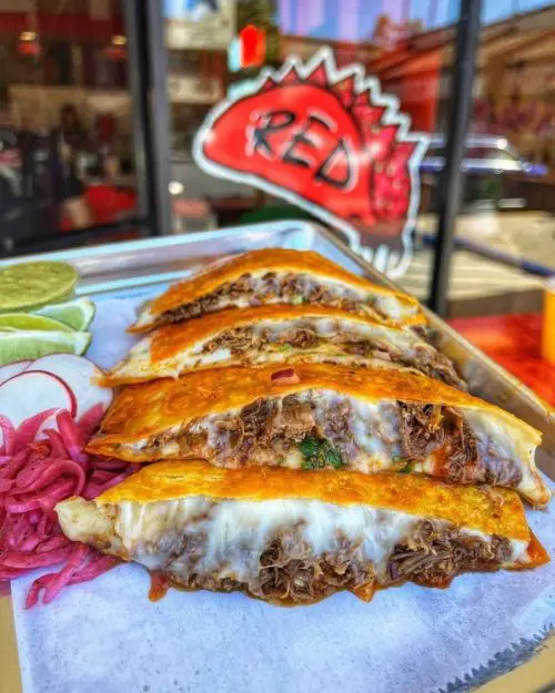 - Birria Quesadilla: Red quesadilla stuffed with cheese, beef birria, cilantro, and onions creates pretty good variations throughout the menu. The 42 reviews prove the red shell concept works beyond tacos throughout cheese-heavy preparations. 🧀