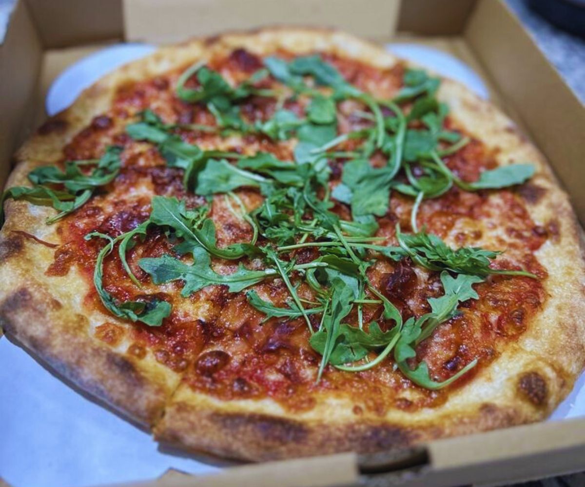 Arugula Prosciutto Pizza: A fan‑favorite pie featuring San Marzano tomato sauce, mozzarella, prosciutto, parmesan, peppery arugula, and hot honey drizzle, delivering that sweet‑meets‑salty, spicy‑meets‑fresh contrast that keeps showing up in five‑star reviews. 🥓🍯