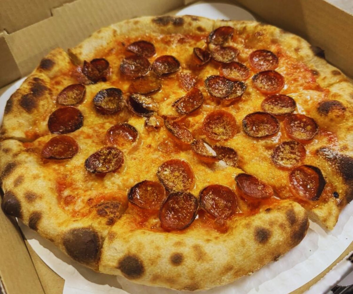 Pepperoni Pizza: Loaded with San Marzano tomato sauce, mozzarella, pepperoni, and parmesan, this is the comfort‑slice champion, ideal for sharing with the table or pairing with a cold drink after a long day on the sand.