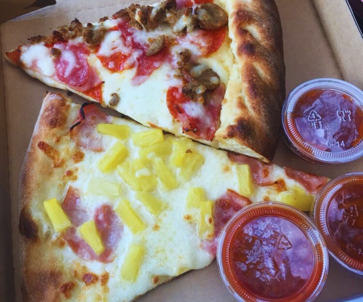 Hawaiian Pizza: The classic pineapple‑and‑ham combination finds plenty of fans here thanks to sweet fruit, salty meat, and that punchy red sauce, with toppings pushed toward the crust so you don’t get any plain bread bites at the end of a slice—something multiple online reviewers on ordering sites appreciate.