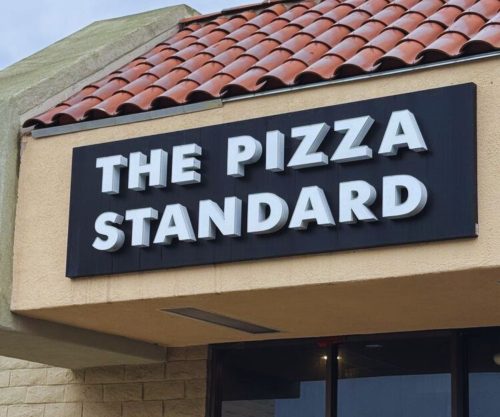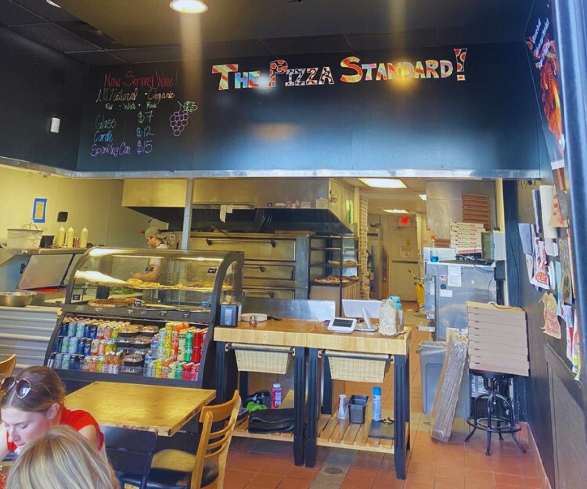 The vibe at The Pizza Standard is cozy neighborhood pizzeria meets East Coast slice joint, matching its low-key location on Clairemont Mesa Blvd.