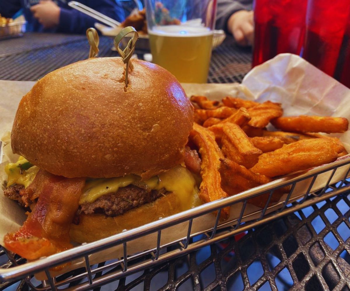 Still, the spirit remains pure taproom comfort: sports on the screens, craft beer flowing, a menu heavy on bar‑food favorites like wings, sliders, pretzels, and fried pickles, and burgers that walk the line between classic and over‑the‑top in the best way. 😋