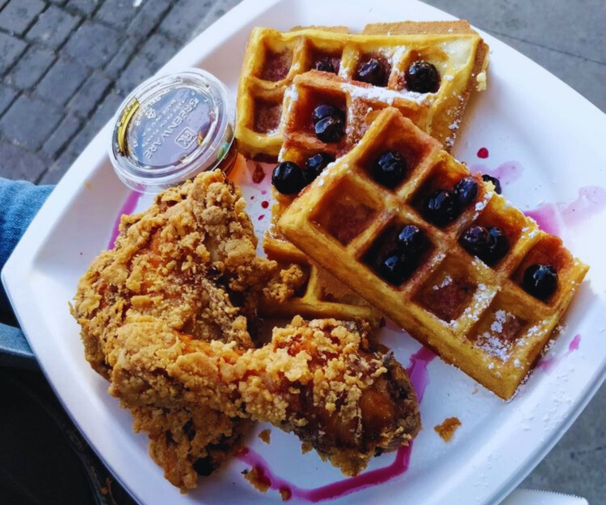 Chicken & Waffle / Chicken in Waffles: Crisp fried chicken served with a Belgian waffle and maple or sriracha‑spiked syrup (sometimes with chicken cooked right into the waffle) creates a playful, sweet‑meets‑spicy feast that feels indulgent and fun, like brunch and bar food crashing into one delicious plate. 🧇🔥