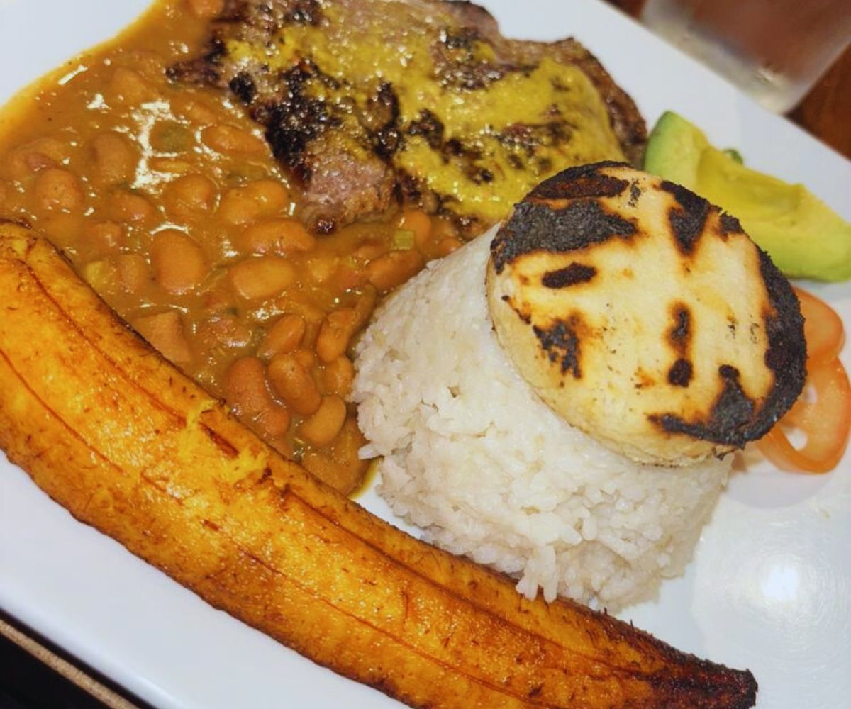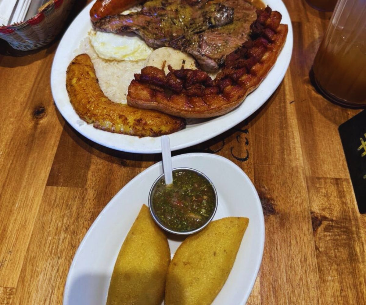 - Bandeja Paisa (Colombian Platter): This Antioquian feast appears on the restaurant’s online menu and in multiple detailed reviews as a massive platter with white rice, beans, grilled steak, chicharrón, Colombian sausage, fried egg, sweet plantains, arepa, and avocado.