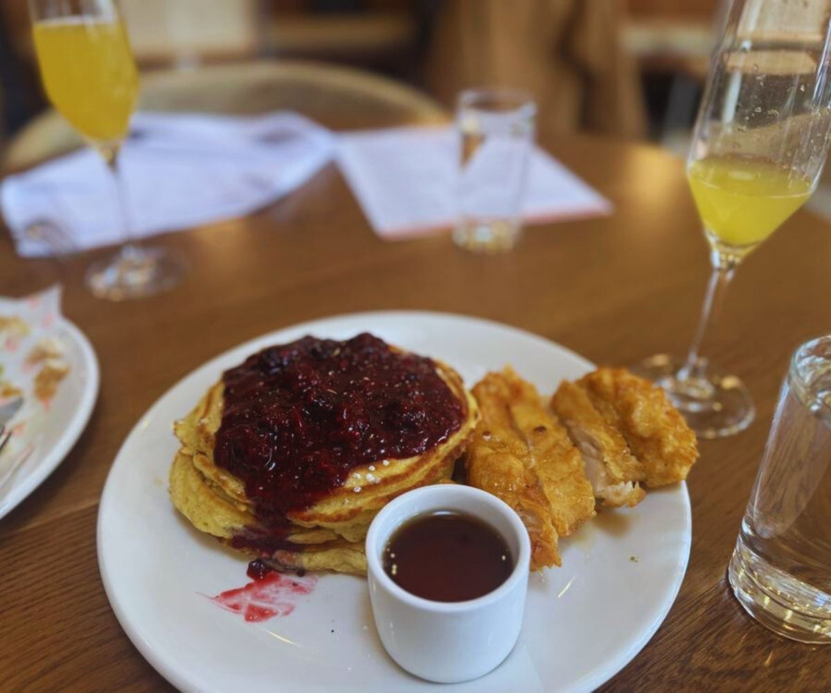 Smashed Fried Chicken and Pancakes: This plate layers crispy fried chicken over golden pancakes with hot honey and gives diners a kind of sweet‑savory combo that many loyal customers will recommend to first-timers. 🍗🥞