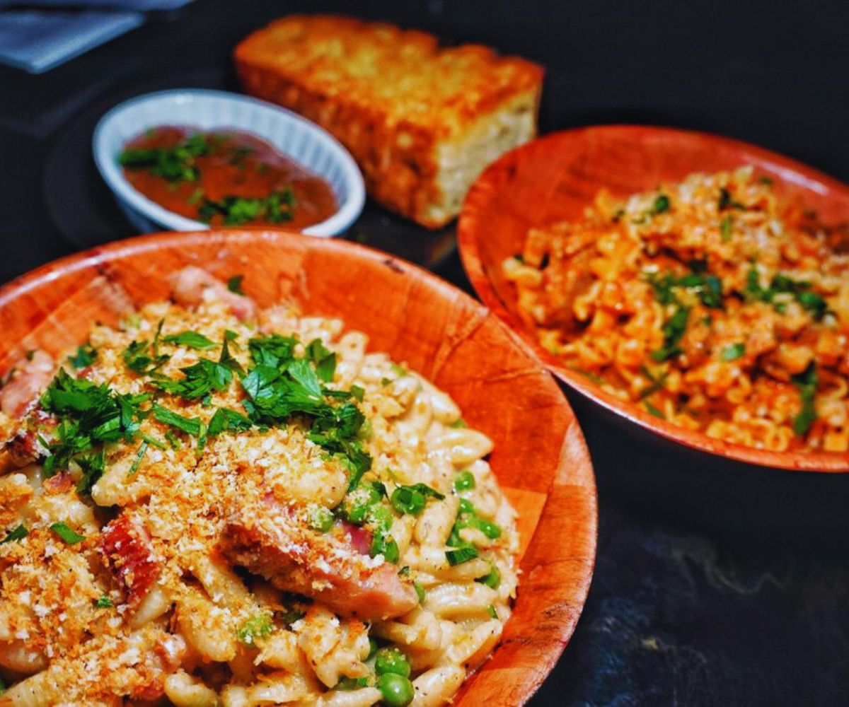 The menu leans into approachable comfort: bowls of pasta, loaded fries, wings, and shareable snacks that match the energy of nearby hangouts recommended in broader Seattle dining roundups.