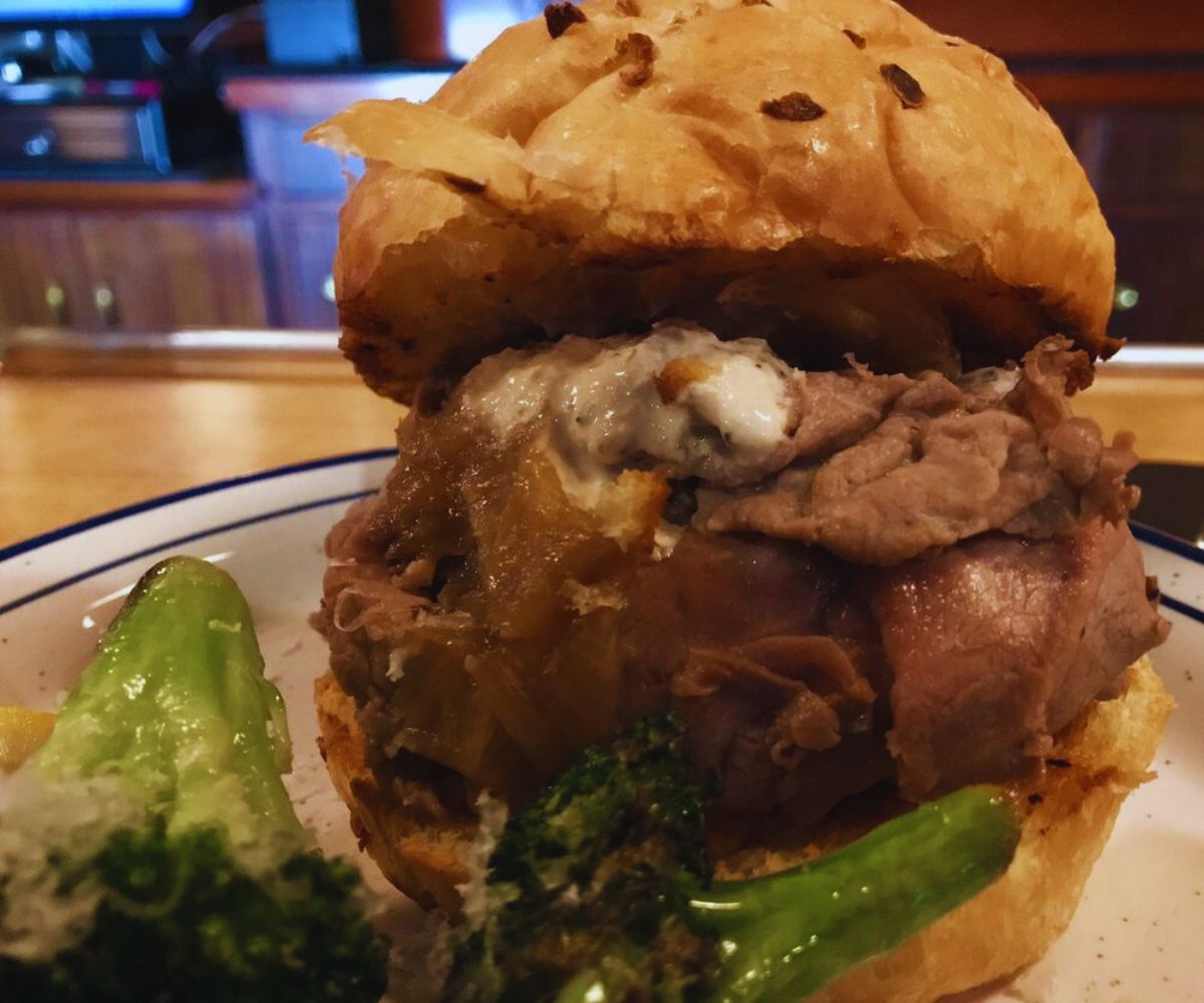 Whiskey & The Wolf is worth a visit for its legendary roast beef, overstuffed comfort-food menu, deep whiskey selection, friendly service, and cozy strip-mall hidden-gem vibe.