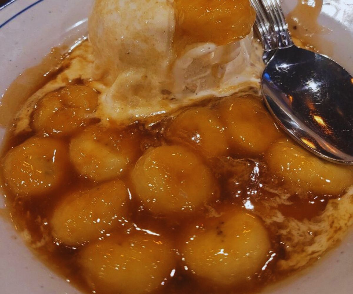Banana Foster: A rich dessert on the dessert menu with browned butter, caramelized bananas, caramel, vanilla bean ice cream, and toasted pecans; plenty of diners consider it the perfect way to end a heavy sandwich-and-whiskey session on a sweet, over-the-top note. 🍌