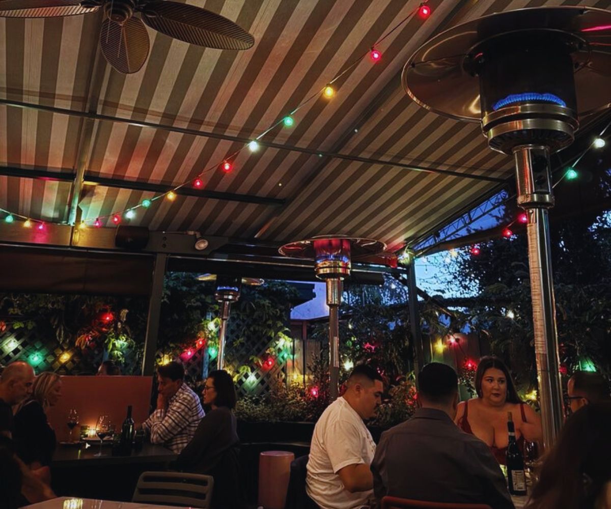 Outside, a patio lined with pink Italian‑made chairs and rainbow string lights (called out by The Infatuation) creates a vacation‑in‑Italy‑but-make‑it‑Long‑Beach setting perfect for slow dinners and long talks. 🌙