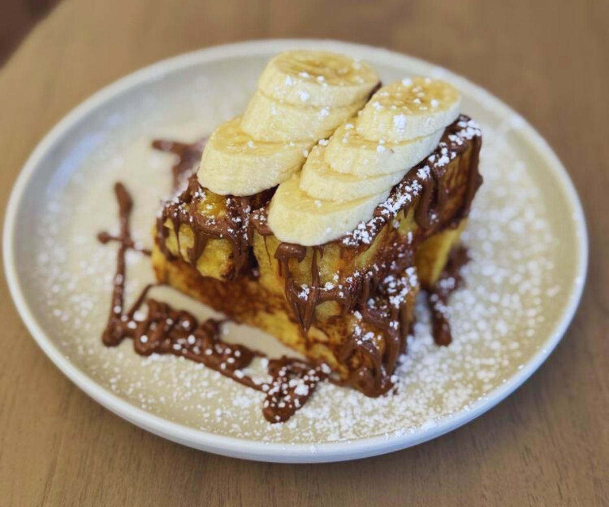 Nutella French Toast: Topped with Nutella and banana, this dish plays like a brunch‑dessert classic, perfect for anyone craving something chocolatey, nostalgic, and made to pair with strong coffee. 🍫🍌