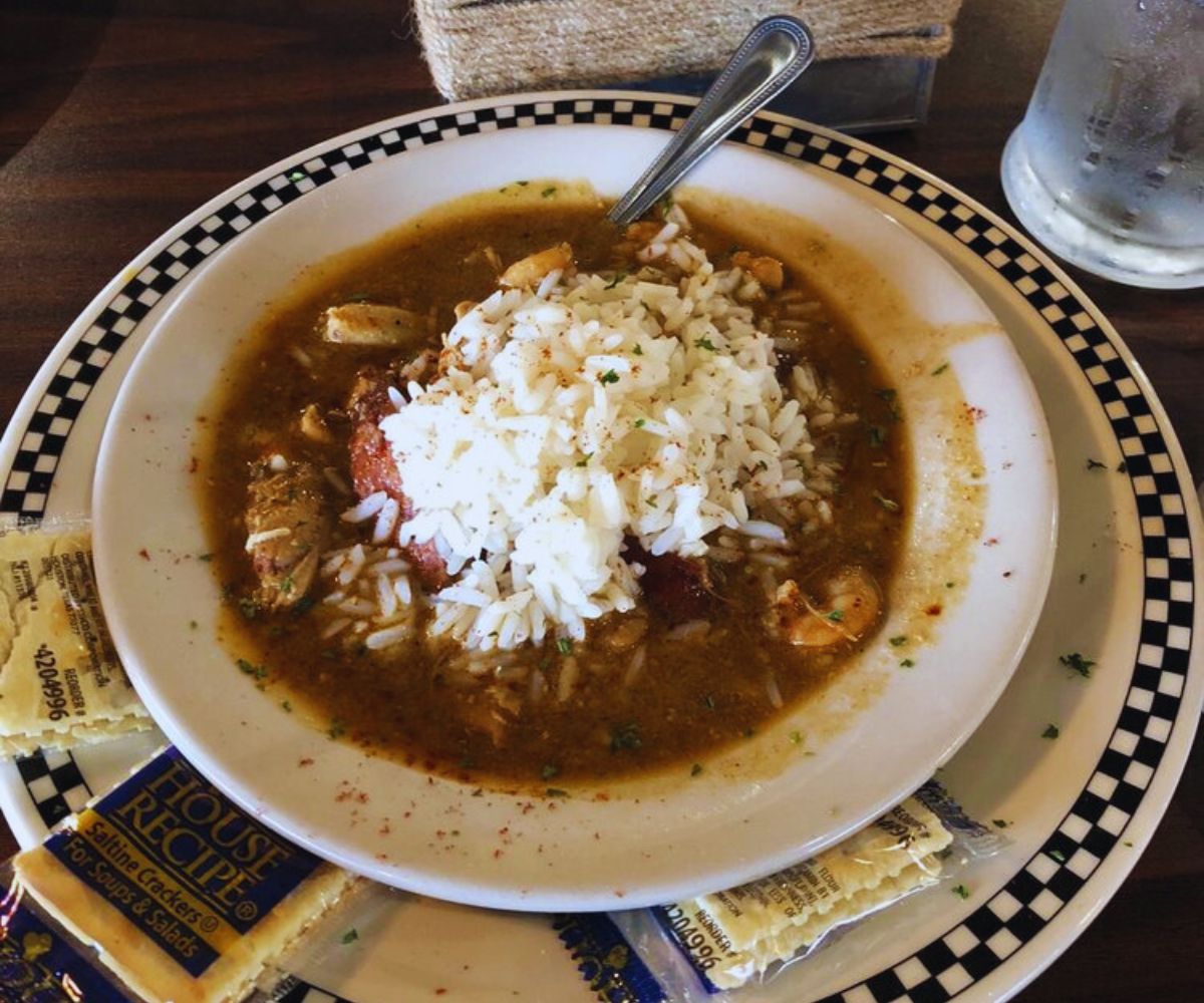 Gumbo (or “Gumbeaux”): Bowls of gumbo here come loaded with rice, sausage, okra, shrimp, seafood, and chicken, and reviewers describe it as “hearty” and “hot…full of delicious seafood & chicken,” so guests can expect a boldly seasoned, deeply comforting Louisiana gumbo experience.