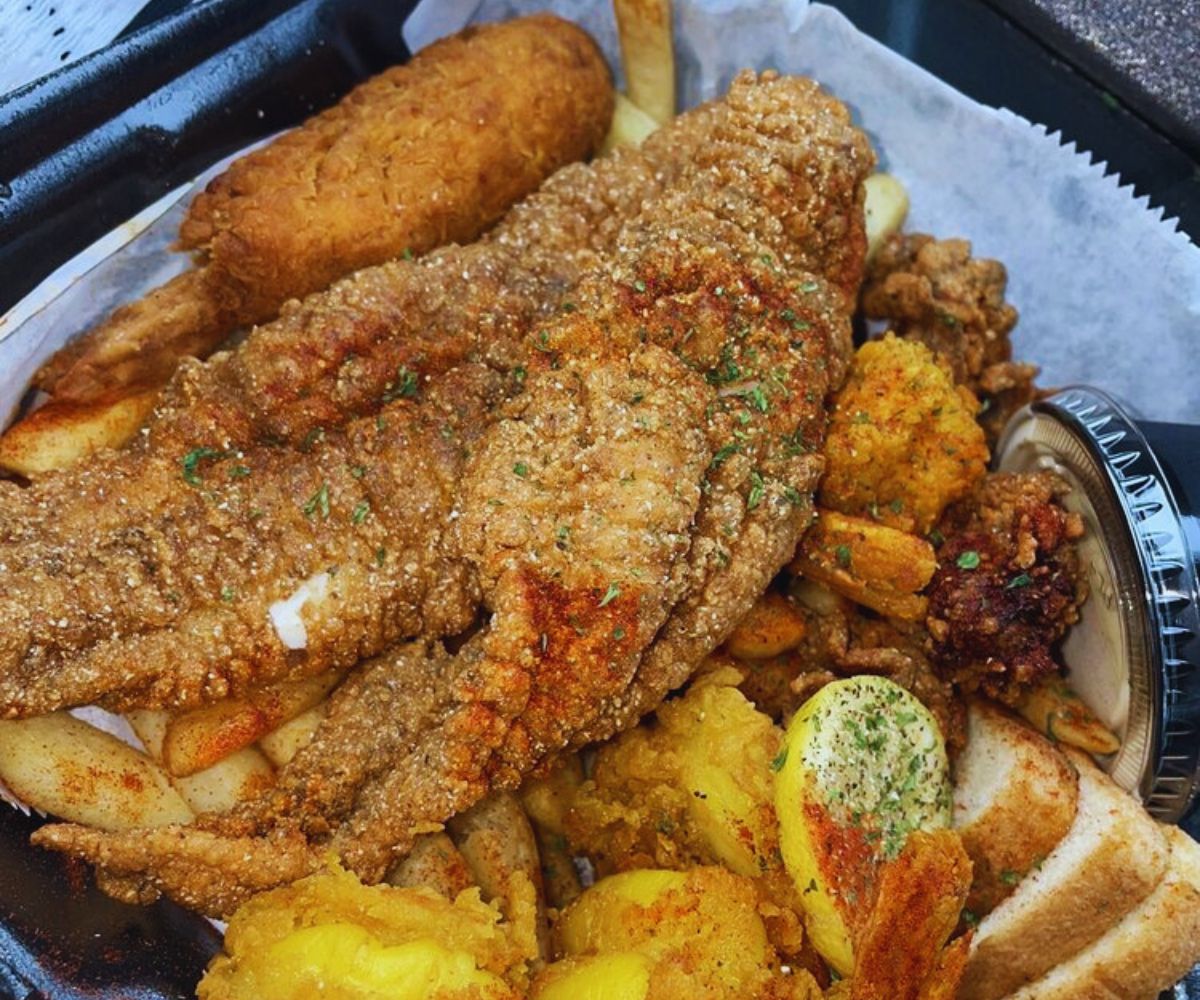 Fried Seafood Platters (Fish, Shrimp, Oysters & Stuffed Shrimp): Diners mention platters piled with fried catfish, shrimp, oysters, and at least one stuffed shrimp, plus giant onion rings, so guests can expect a fun, shareable “try it all” feast that feels like a Louisiana seafood party on a plate.