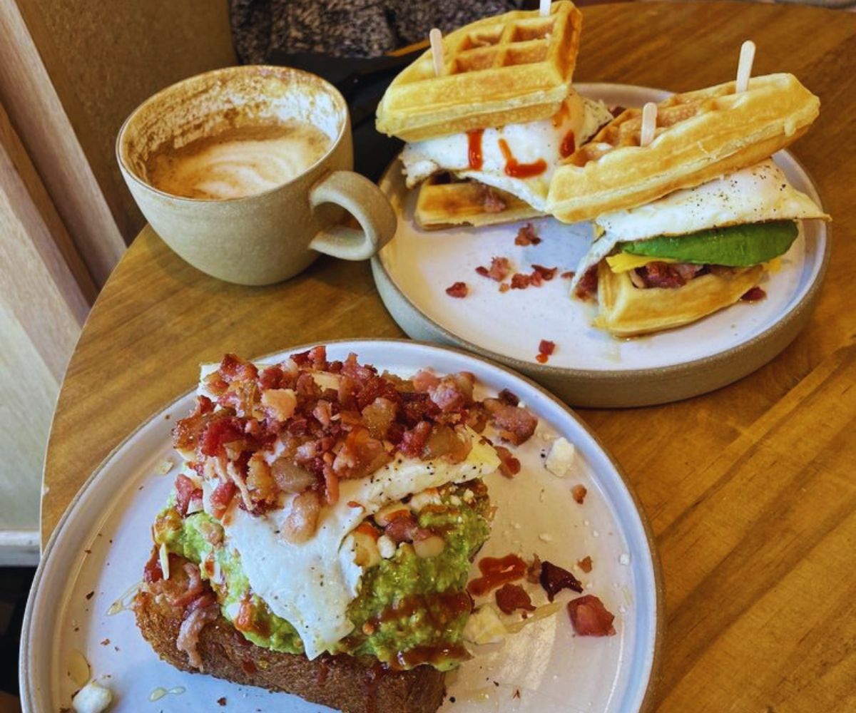 Regulars line up for towering waffles, loaded toast, and smooth cold brew as baristas shout out names and chat like old friends.
