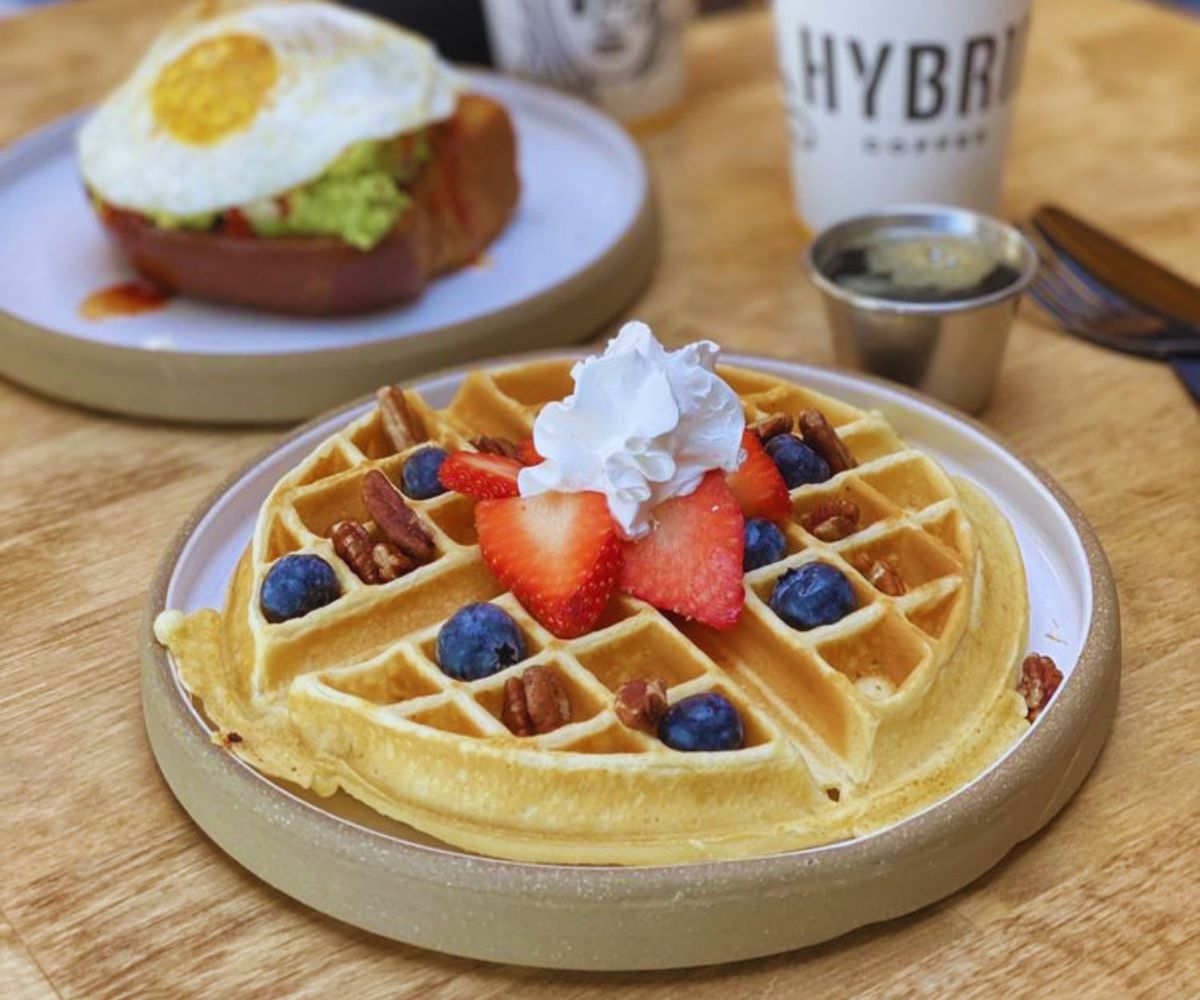 Hybrid’s menu reads like a brunch wish list: waffles, brioche French toast, acai bowls, granola bowls, and the kind of loaded avocado toast that helped it get featured in local guides such as The Best Spots for Avocado Toast in Jersey City.